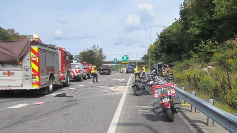 Police say the pickup’s two occupants and two other motorcyclists were also injured in the crash on Interstate 95 in Augusta early Sunday afternoon.