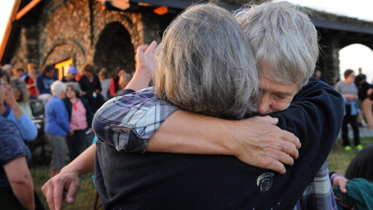 ROCKPORT, Maine — Sorrow and silence mixed at twilight Thursday as Elizabeth “Buffy’’ Krause was remembered and honored by hundreds of mourners at the panoramic crest of a hill overlooking Penobscot Bay.
