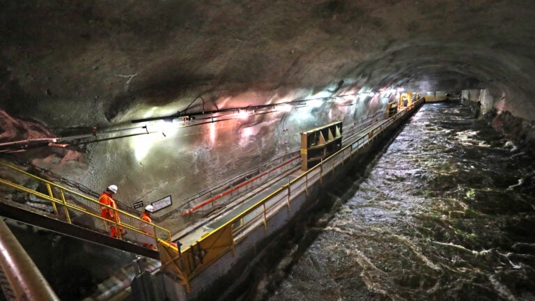 BAIE-COMEAU, Québec — Deep beneath a granite mountain in the vast, snow-covered wilds north of the Saint Lawrence River, a frigid torrent surges through a massive, man-made tunnel, its white water propelling eight powerful turbines that generate electricity for hundreds of thousands of people.
