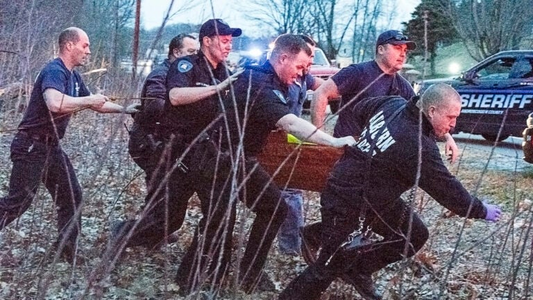 Rescue personnel from the Maine Warden Service, left, Auburn Fire Department and the Androscoggin County Sheriff’s Department search for the missing 5-year-old boy Wednesday.