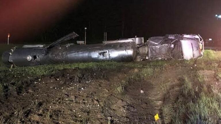 State police say the tanker was traveling south early Tuesday when the driver attempted to take the exit 20 off-ramp. The tanker rolled over and came to rest on its side, spilling approximately 3,500 to 4,000 gallons of milk.