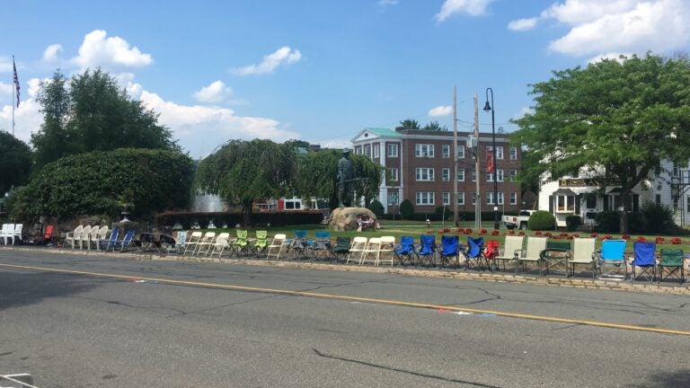 According to Sullivan, Wakefield’s space-saving tradition has been going on since the early 1990s and has grown more popular each year. WGBH producer Karen Marshall noticed them more than 48 hours before this year’s parade, increasingly populating the town’s curbsides and sidewalks.