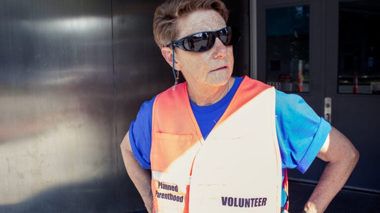 Sue Fish, an experienced clinic escort at the Greater Boston Health Center, first grabs a morning beverage — maybe a coffee or a water — and then checks herself in for her usual shift. Marked by her neon “volunteer” vest, she faces however many protesters will be accompanying her for the day — ranging from a few to a sea of them — and she doesn’t flinch.But there was one instance, just one, the 69-year-old recalled, in which she had to briefly excuse herself, step inside, and take a deep breath. While volunteering, she had made eye contact with a young boy sitting in the nearby Caffe Nero with his father. Soon, the pair began making friendly exchanges — waving at each other and playing hide-and-seek through the window.Within moments, things took a turn. “[The father] stopped to chat, and one of the protesters came over and started saying horrible things to him about that I ‘kill babies’ — and there was a child there,” Fish said. “I was so angry. Because this is a child. That’s not right.”Standing on the corner of Commonwealth Avenue and Alcorn Street in Allston is one of many Planned Parenthoods that, in recent years, have been reinforced as a key battleground in a war waged long before the birth of Roe v. Wade, the landmark 1973 decision legalizing a woman’s right to abortion.And positioned outside the entrance and exit to this center are volunteer clinic escorts like Fish, who are responsible for helping patients in and out of the building safely. On the morning of August 28, the city was in the midst of an oppressive, four-day heat wave. But, just as Fish and other escorts show up rain or shine, winter storm warning or heat advisory, the protesters, with literature and rosary beads in hand, also arrive like clockwork. Fish had short, cropped brown hair and was sporting an electric blue shirt, the bright peachy-pink vest emblazoned with the word “VOLUNTEER” on the back, and had paired her cuffed denim shorts with brown hiking sneakers. With temperatures set to reach 97 degrees that day — she donned black sunglasses, which she balanced with dangling peace-sign earrings. Her fair skin was sprinkled with freckles, and she often flashed a smile or cracked a joke — a means, she said, of releasing the tension and making those entering the center feel more comfortable.Working the shift alone, Fish stood no more than several yards from the protesters — one man and two women, “regulars,” she said — who repeated Catholic prayers like the “Our Father,” and encouraged incoming patients to seek alternative options, as opposed to receiving care from Planned Parenthood. That Tuesday was, however, what Fish would later describe as “mild,” referring to both the protesters’ targeting of patients and passersby, as well as the graphic nature of the signs, which said things like: “When they tell you that abortion is a matter just between a woman and her doctor … They’re forgetting someone.”