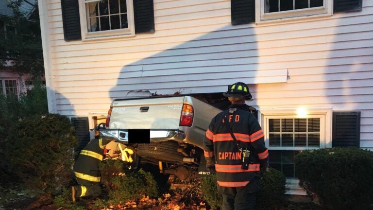 A pickup truck went almost completely into a building in Chelmsford, and the driver, an 83-year-old Lowell man, was flown to Beth Israel Deaconess Medical Center with “serious, life-threatening injuries,” police said. Emergency responders were called to 22 Middlesex St. at 5:20 p.m. Monday and found a Toyota Tacoma about three-fourths of the way into the building, which holds a dentist’s office and an insurance business, according to authorities.No one else was injured in the incident; the man was the only occupant of the vehicle, and, while there were people in the building, they weren’t hurt.Police believe the pickup was on Wright Street when it crossed Middlesex Street and entered the building. They’re continuing to investigate.