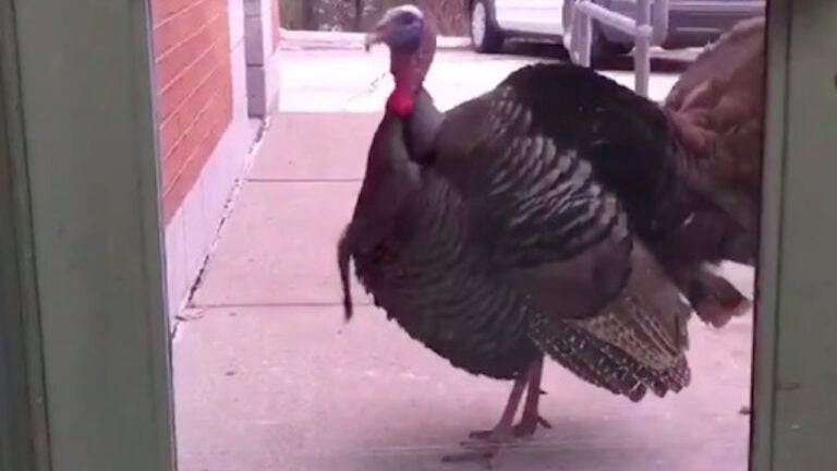 A turkey pecked on a police station door. And it was caught on video.
