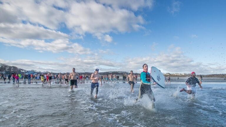 About 100 people jumped into frigid water at the 7th annual “Plunge 4 Pete’’ at Good Harbor Beach and about 300 others supported from the shore.