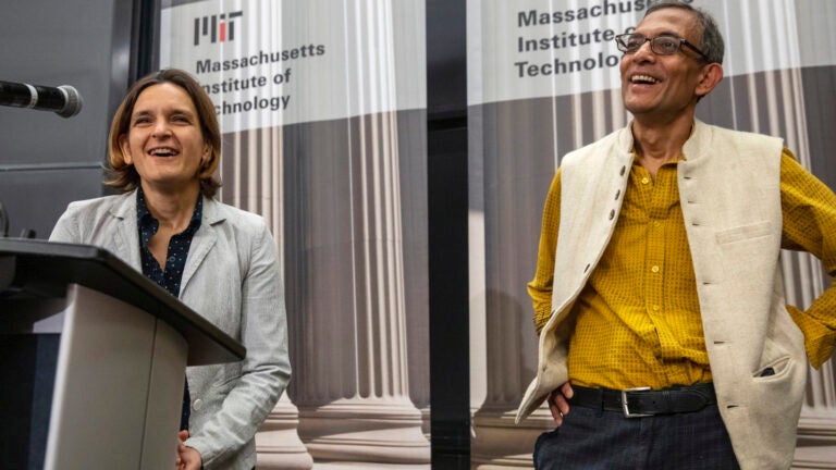 Duflo and Banerjee told a news conference at MIT they weren’t sure how to react when the Nobel committee woke them with the news of their win.