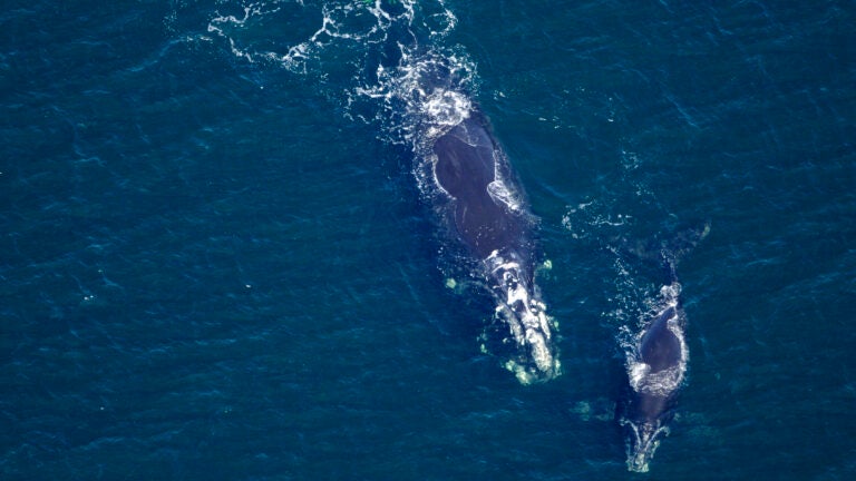 Private citizens found an aggregation of North Atlantic right whales in the area. The National Oceanic and Atmospheric Administration said it is asking mariners to go around the area or travel through it at 10 knots or less until April 24.