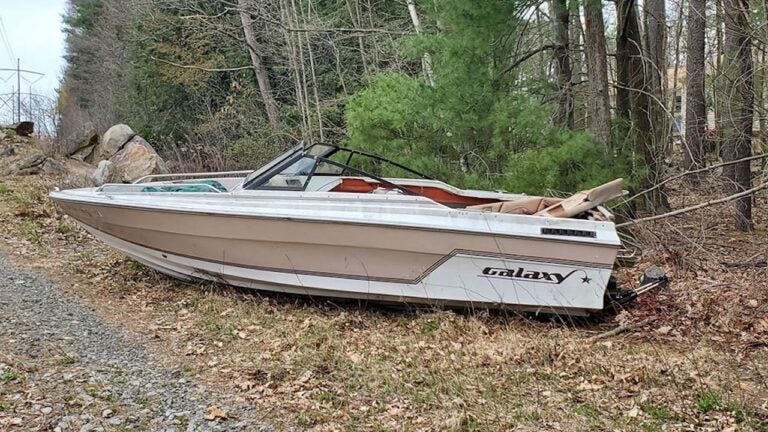“Hey Captain Ahab!” begins a Facebook post by Burlington police in what appears to be the alleged mysterious dumping of a boat in a wooded area.Burlington police are looking for the owner of a Galaxy Bowrider they say was left near the power lines.“If anyone noticed the now empty trailer parked where their neighbors Galaxy Bowrider used to be please give us a call at 781-272-1212 so that we can discuss their poor navigational choices,” part of the post from Monday morning reads, accompanied by a photo of the now land-faring vessel.“Abandon ship doesn’t mean illegally dump your boat by the power lines!”