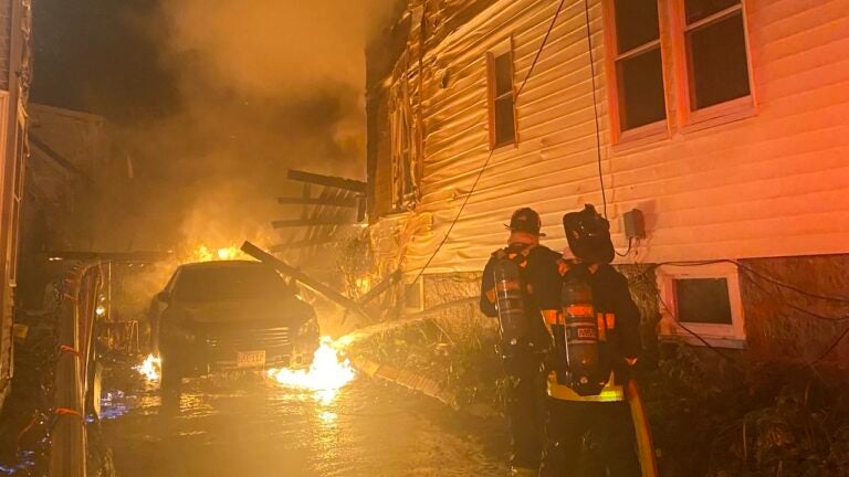 The blaze set a car on fire that had been parked in the driveway, and the fire spread to 20 and 26 Fairmount St., as well as to a garage behind 28 Fairmount St., according to the department.