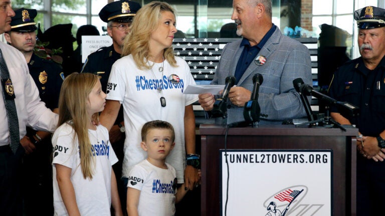 Two years ago, Cindy Chesna and her two children got a big boost of support after the line of duty death of her husband, Weymouth Police Sgt. Michael Chesna, when a New York charity stepped in to pay off the mortgage on their home.