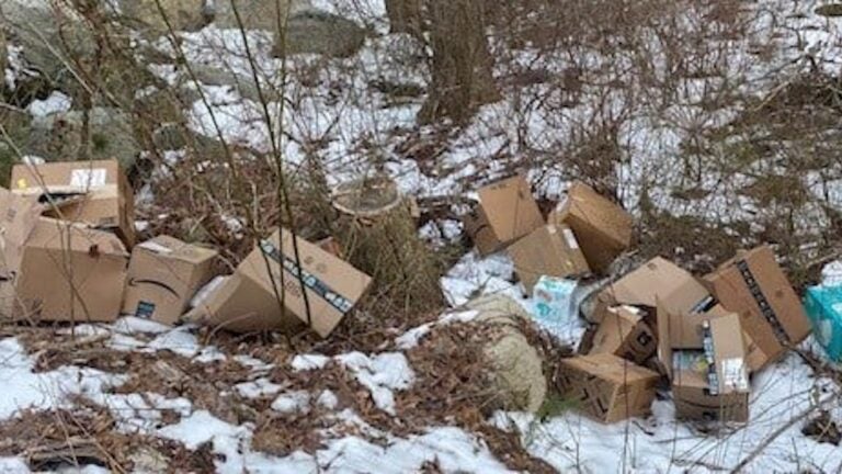 A ‘couple dozen’ Amazon packages were found in the woods in Plympton