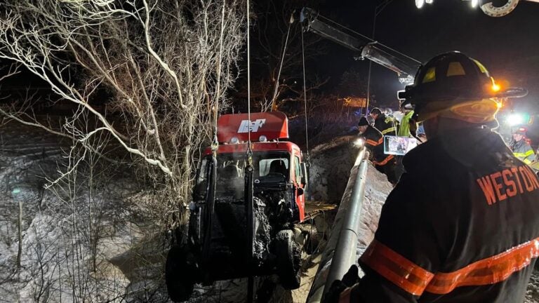 Weston Fire and State Police dive crews pulled hundreds of packages and pieces of mail out of the Charles River following a tractor-trailer crash Saturday. Investigators are still unsure of the exact cause of the accident.