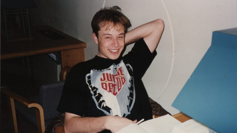 Gwynne ran to her husband right away. She had much better stuff than some papers with the initials “EM”: Gwynne had dated Musk in college, and had some photos of him, and a birthday card from him, and a necklace he once gave her. They’re available for auction through the Boston auction house RR Auction, with a deadline of later on Wednesday. People are bidding thousands of dollars on items in Gwynne’s collection, which includes photographs of Musk hanging out in North Providence.