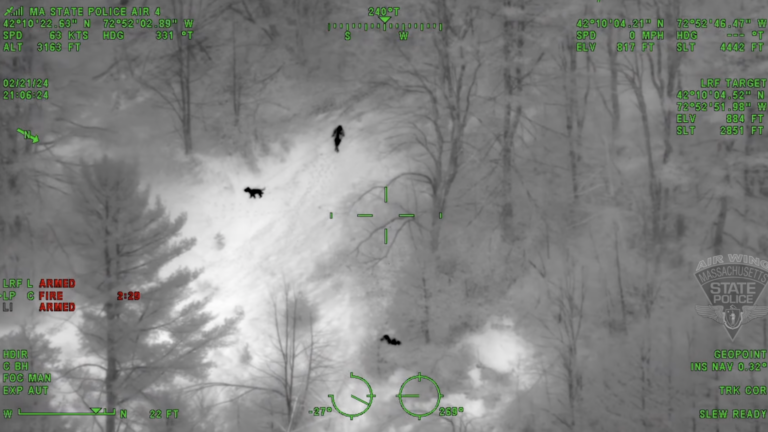 State police said troopers, including the Massachusetts State Police K9 Unit, Special Emergency Response Team (SERT), and Air Wing, responded on the afternoon of Feb. 21 to help police in Russell search for the missing man, who had been last seen just after noon in the area of Blandford Road.