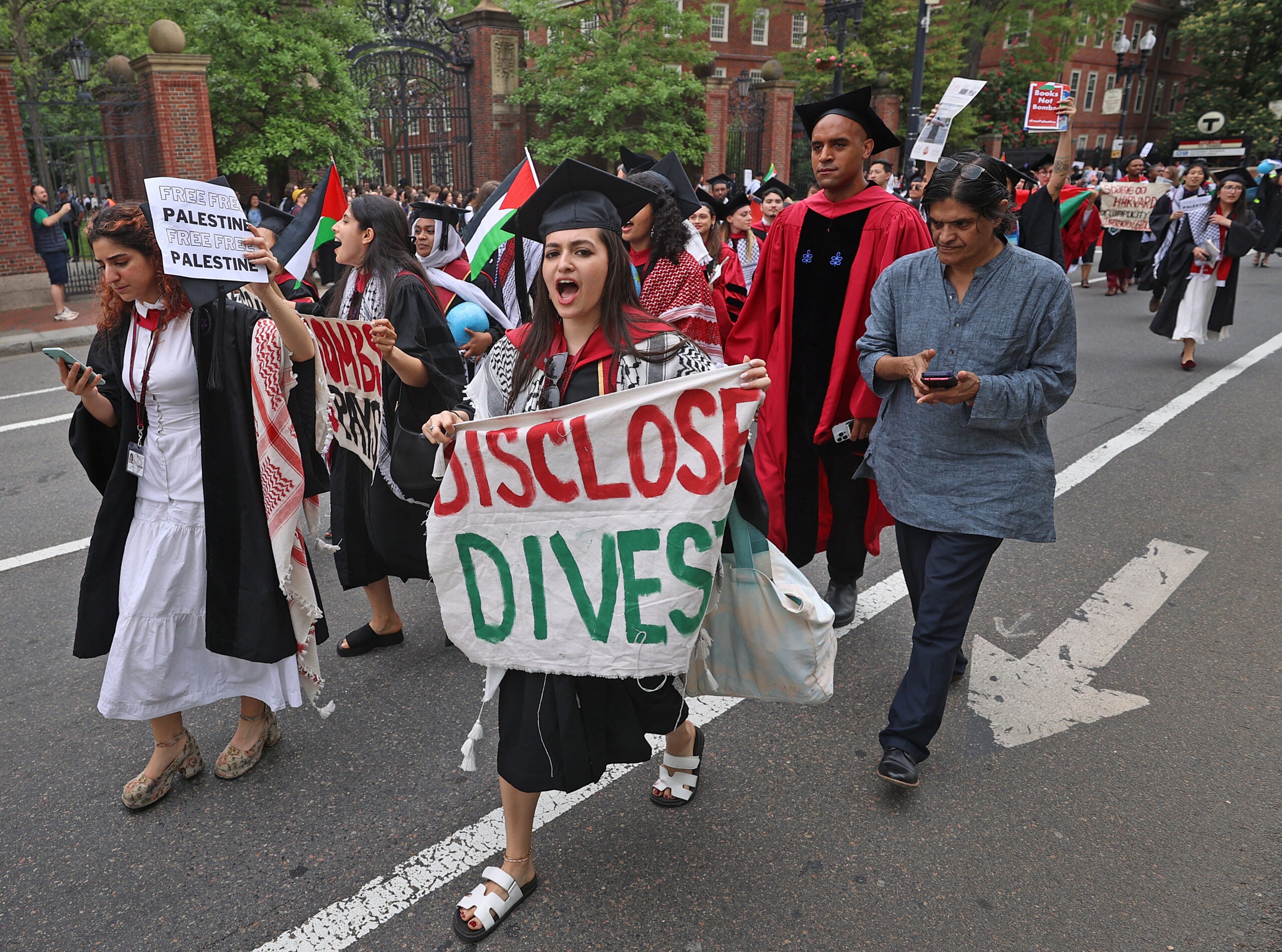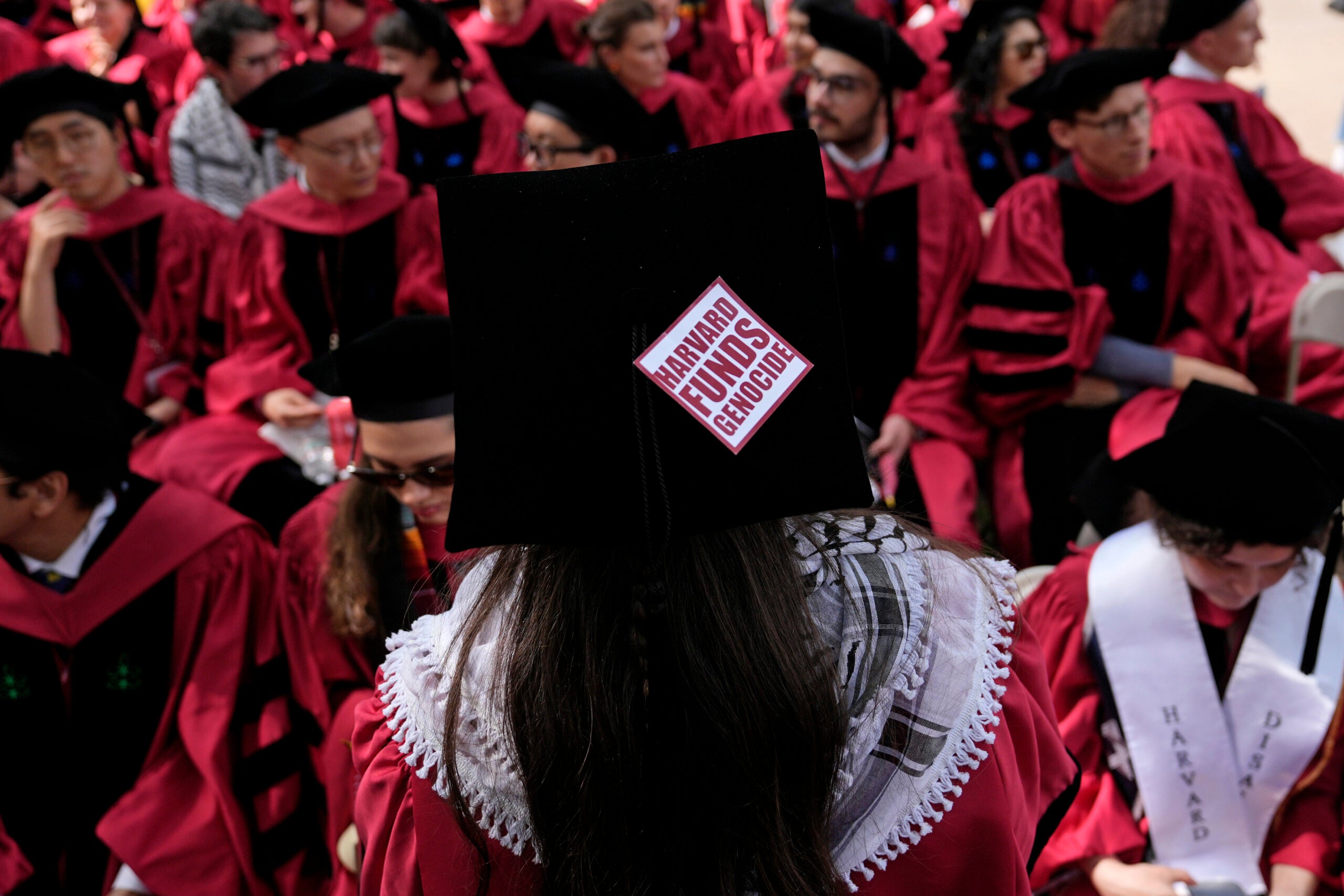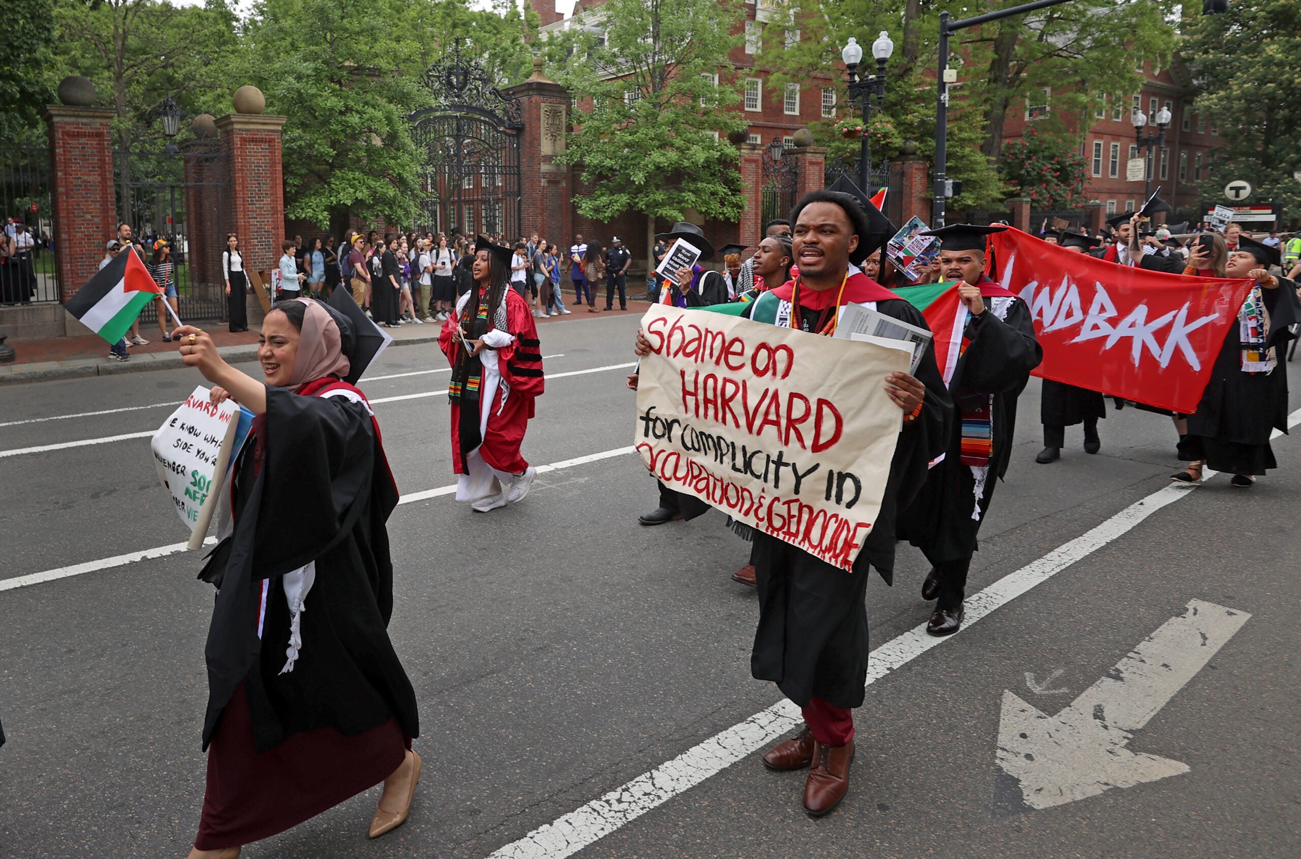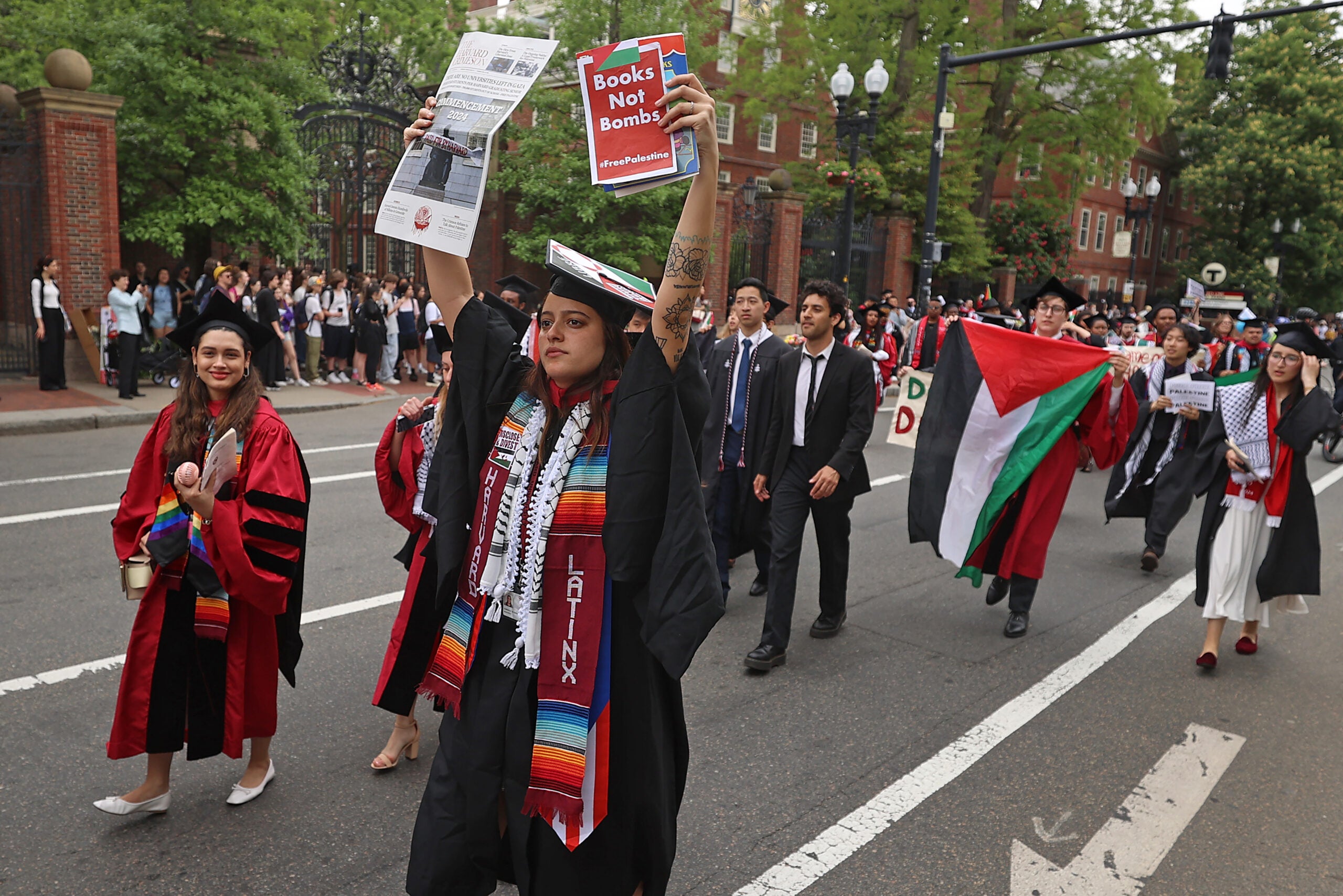 BREAKING: Hundreds of Harvard students and faculty have walked out of commencement in support of Palestine and the 15 seniors having their degrees withheld for protesting a genocide. pic.twitter.com/D0lGKrmzvq