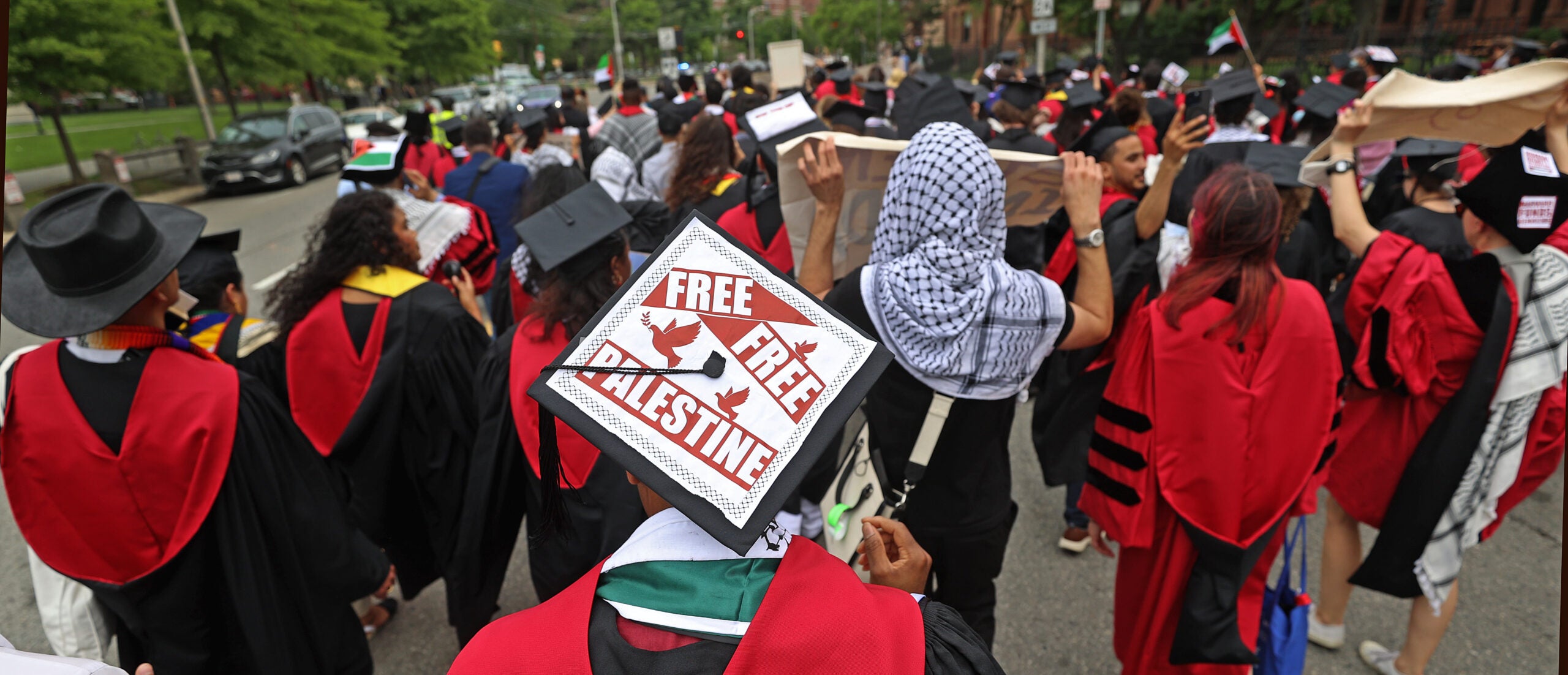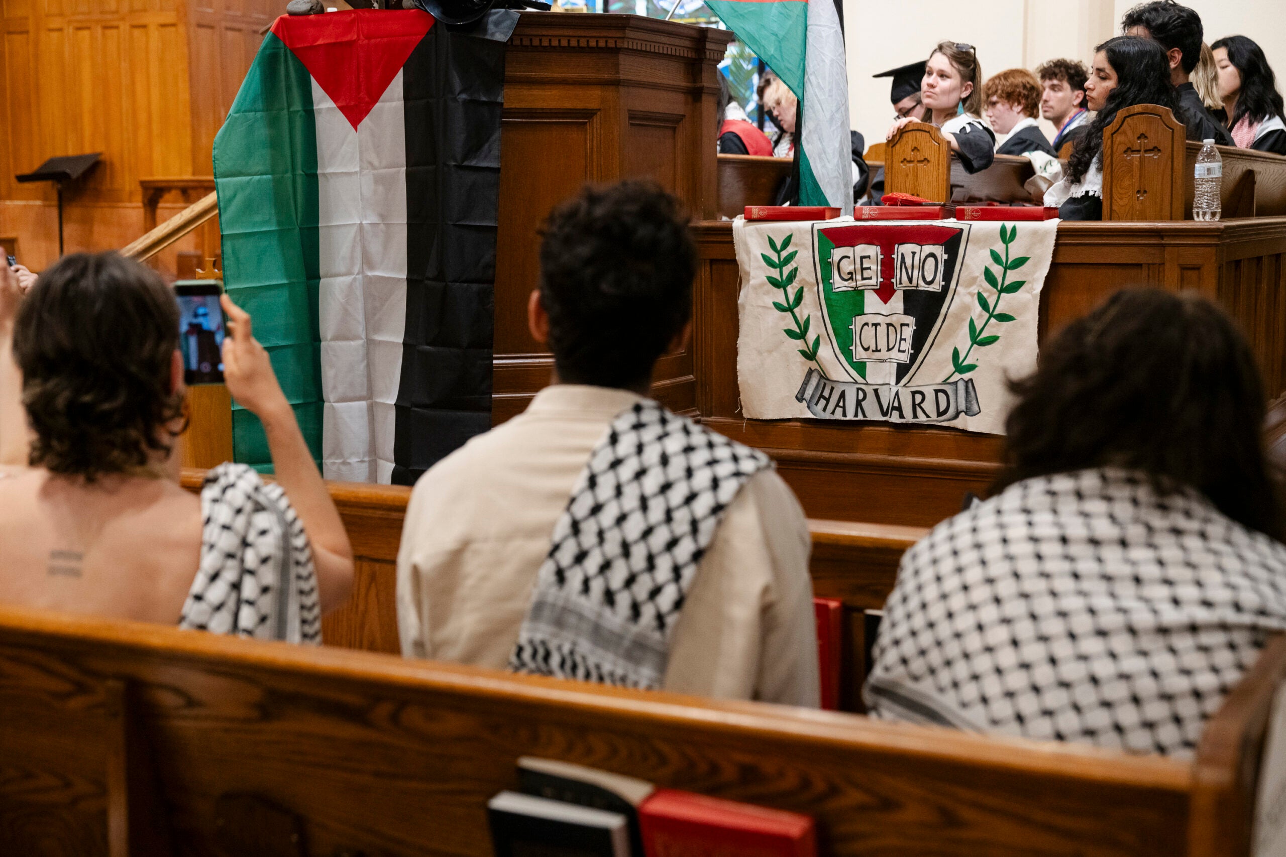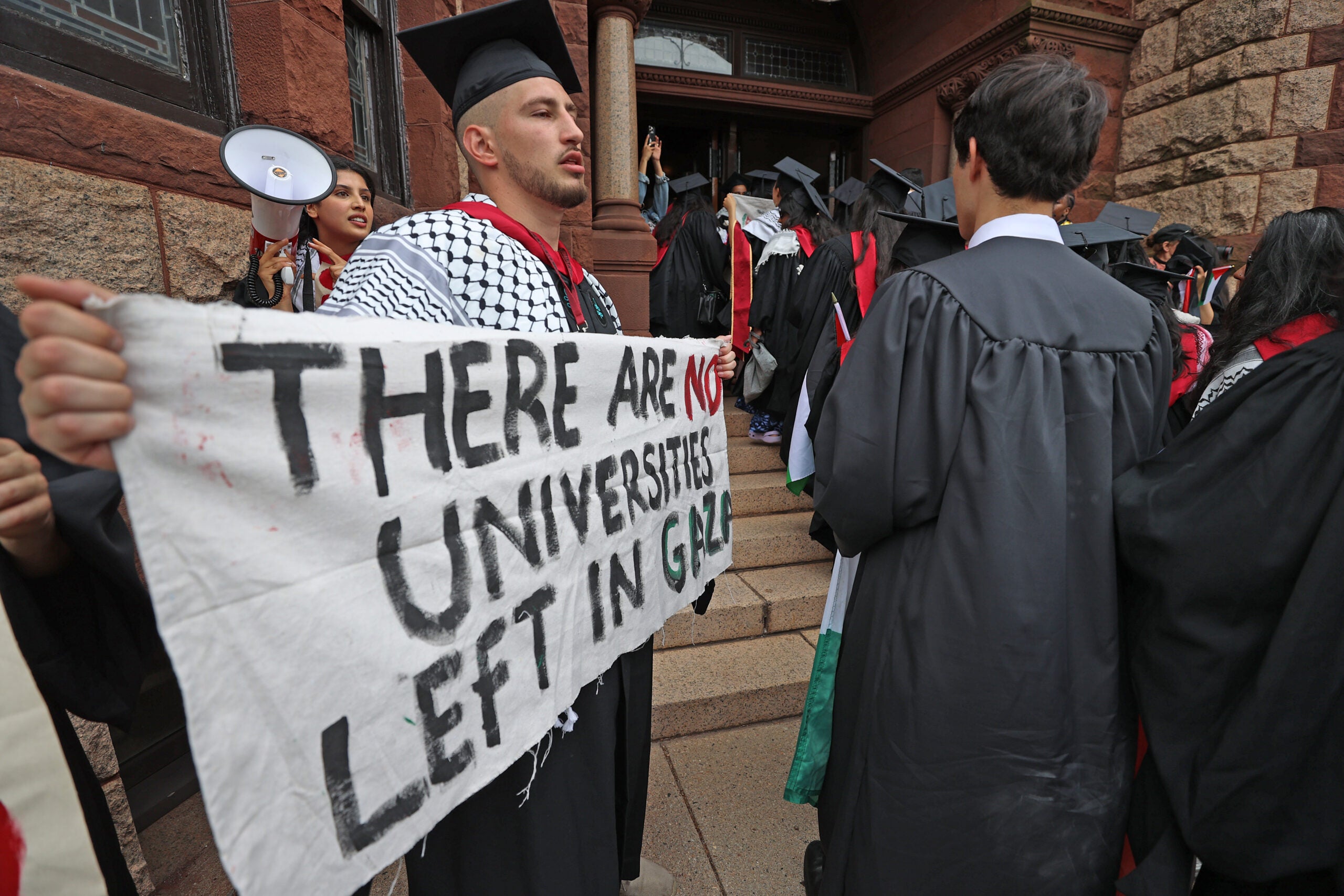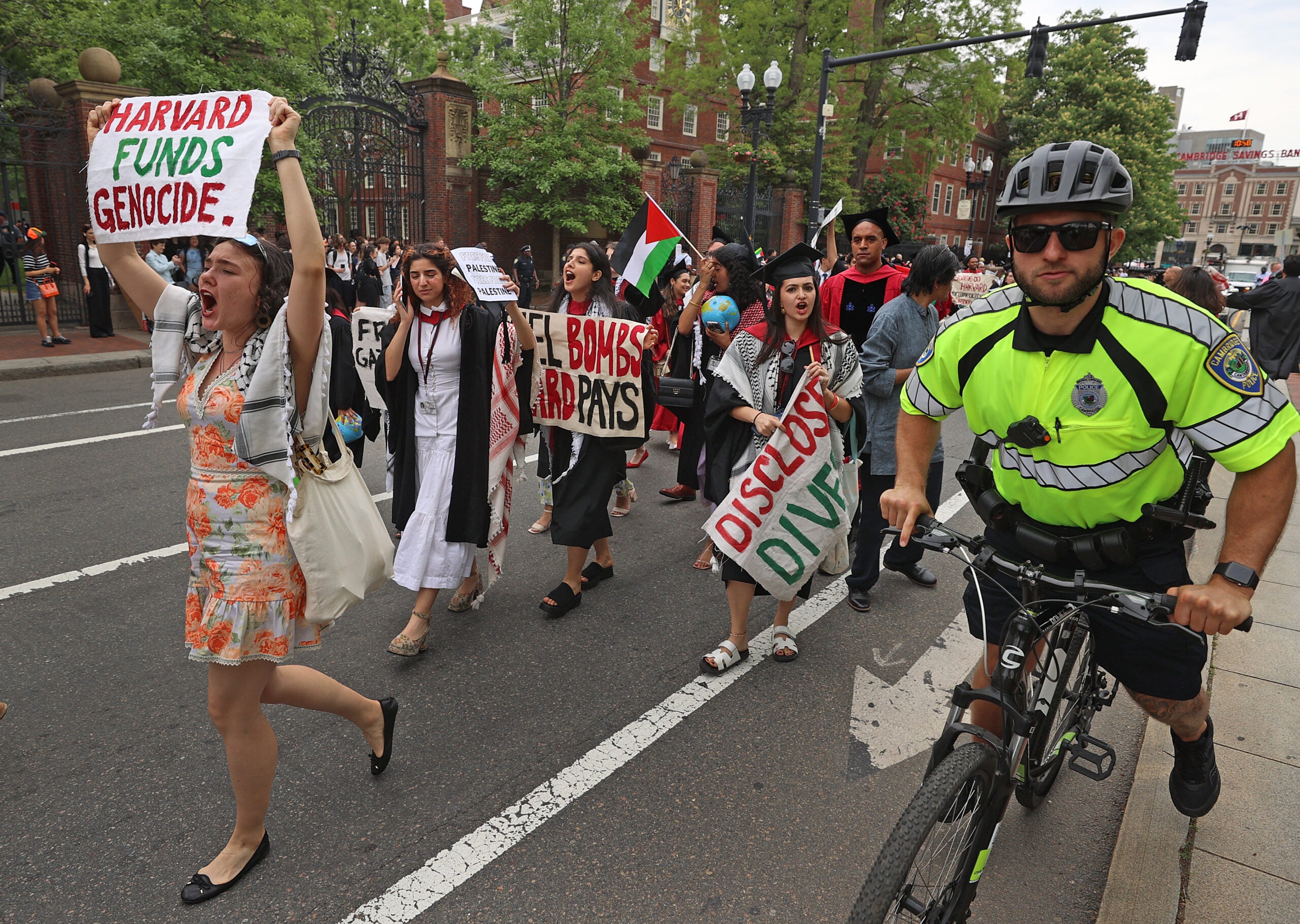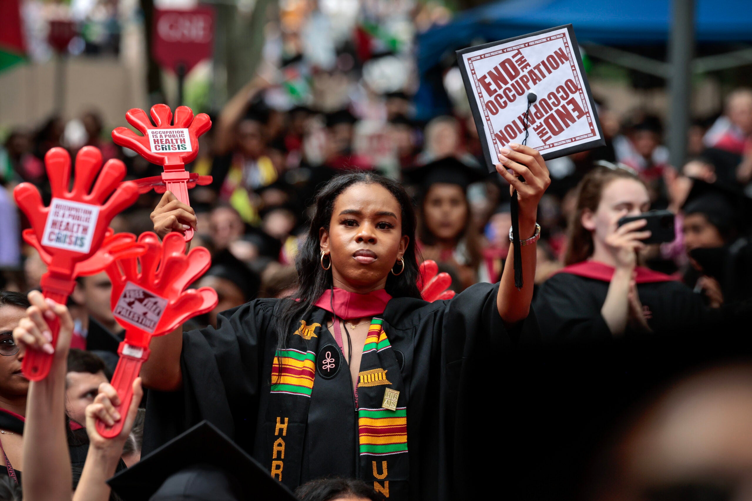 BREAKING: Hundreds of Harvard students and faculty have walked out of commencement in support of Palestine and the 15 seniors having their degrees withheld for protesting a genocide. pic.twitter.com/D0lGKrmzvq