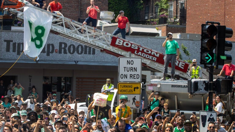 A large crowd of unruly Celtic fans climbed on top of four vehicles belonging to Boston firefighters, damaging them during the team’s championship parade on Friday, according to a Boston police report.