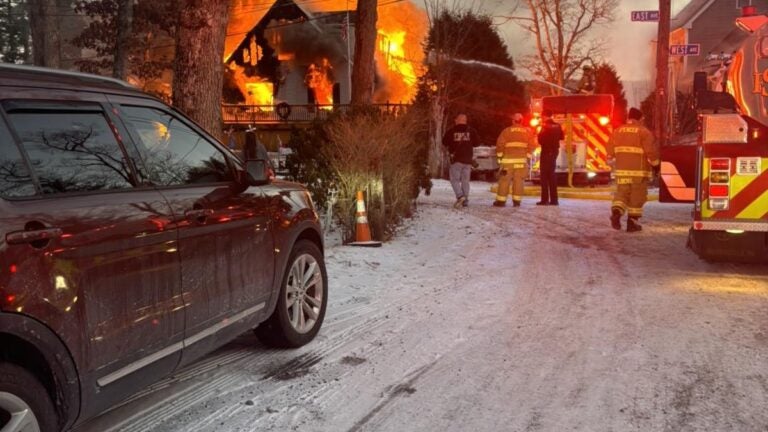 There were no accessible fire hydrants nearby, so crews had so use portable pumps to draw water from nearby Thompson Pond, Shea said in a Facebook post.
