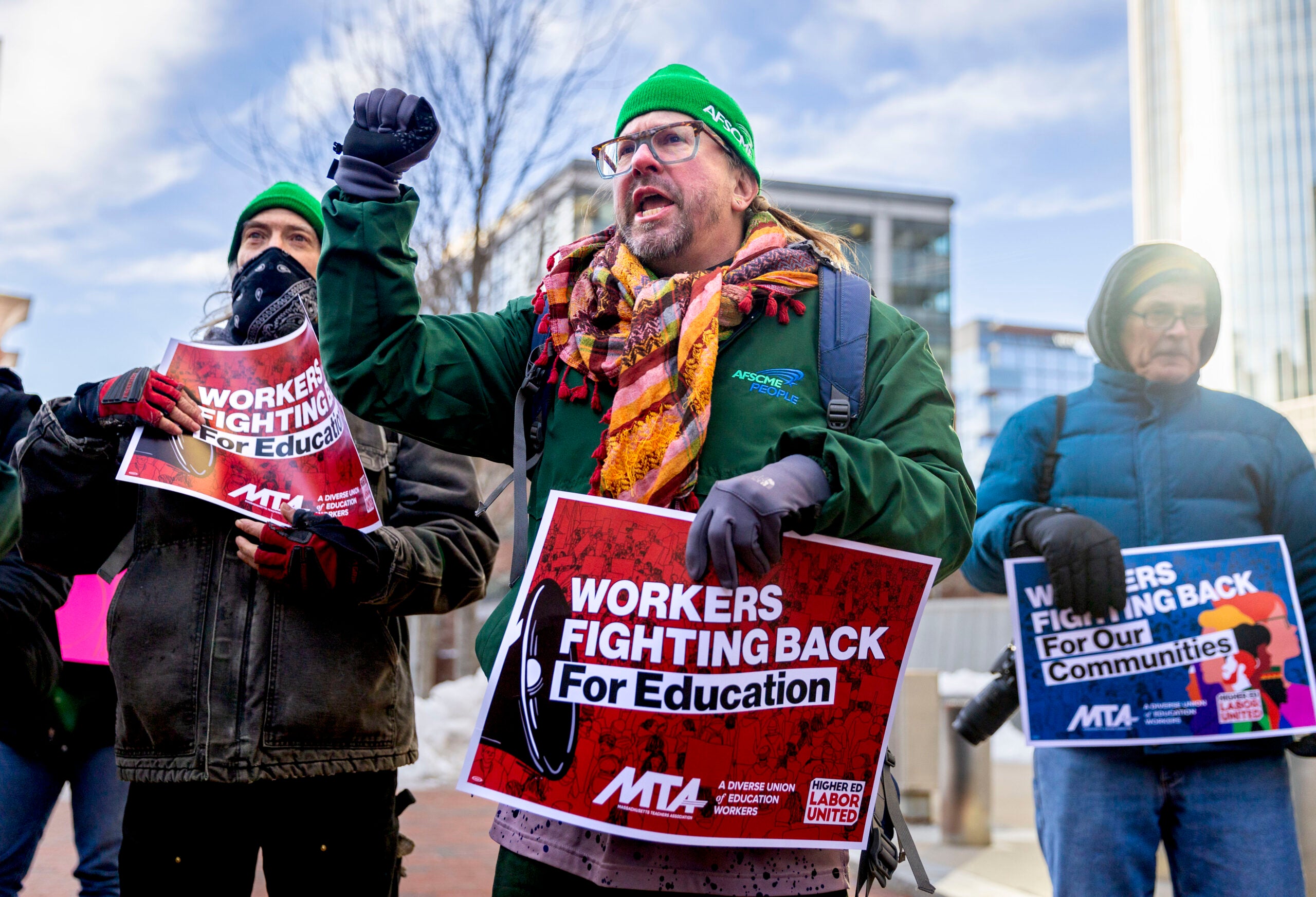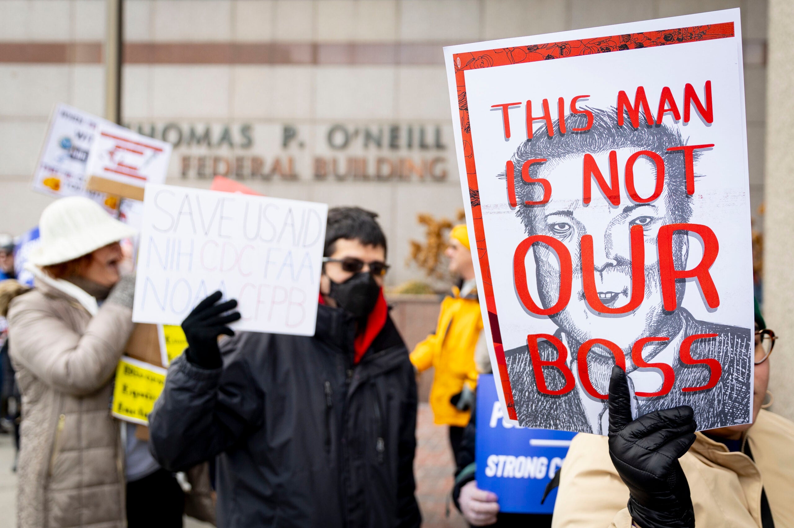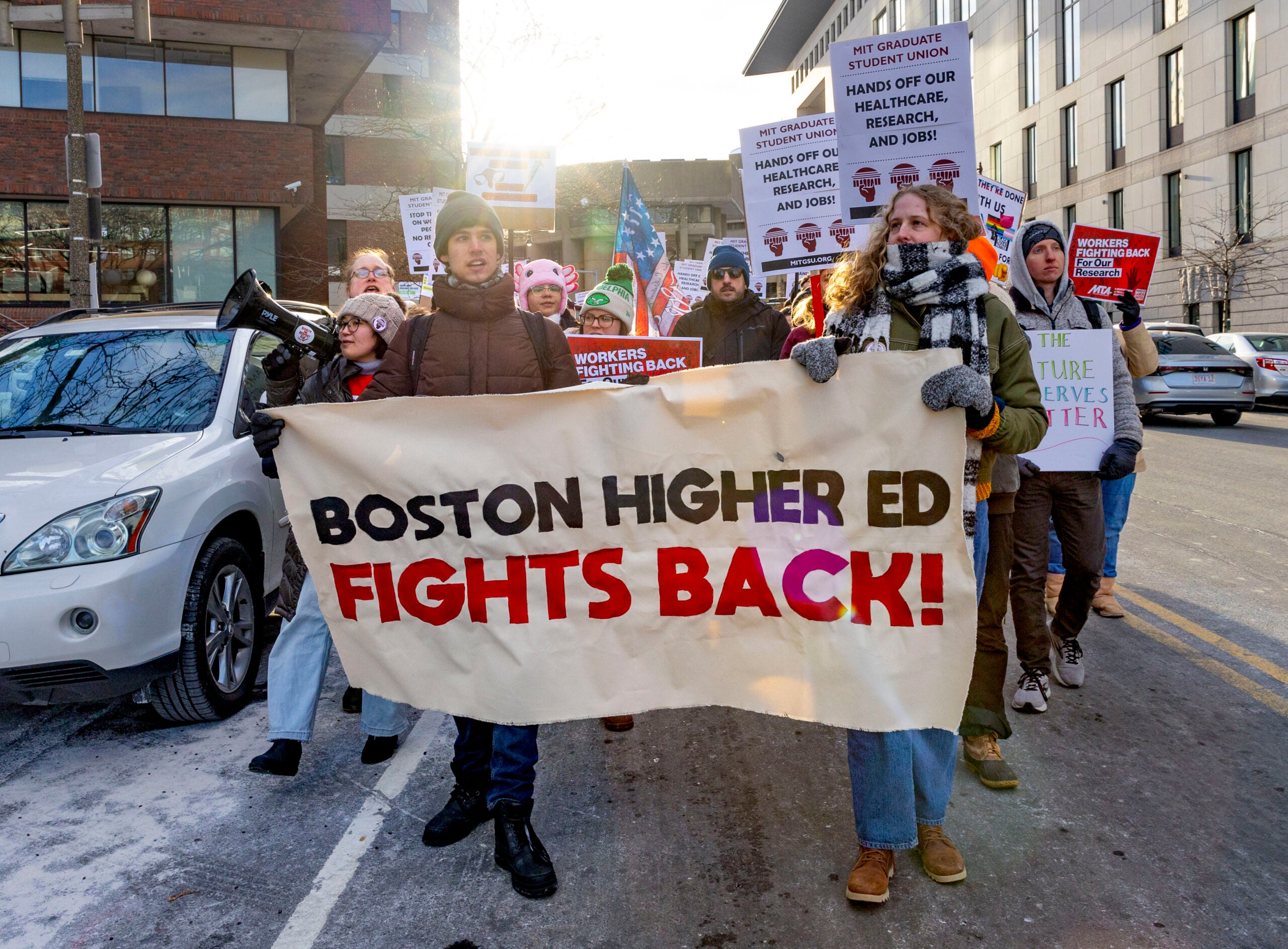 Federal workers and university researchers rallied in Boston on Wednesday to oppose the White House’s cuts to the federal government.
