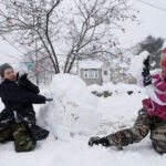 Snowballs are on the agenda for these kids enjoying a day off from school in Boston Tuesday.