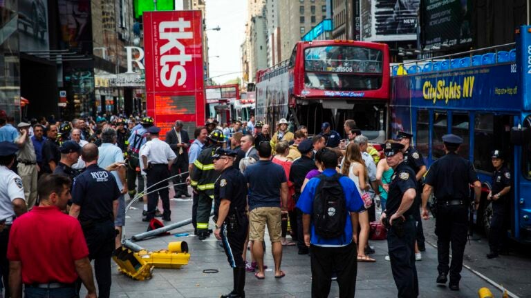 Images from Times Square show medical responders, a knocked-over traffic pole, and plenty of concerned onlookers.