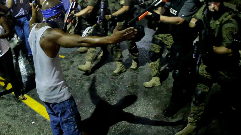 “On Tuesday, August 19, 2014, shortly before midnight, an incident occurred wherein a St. Ann Police Officer pointed a semi-automatic assault rifle at a peaceful protestor after a verbal exchange,’’ the statement reads. “It was at this time a St. Louis County Police Sergeant walked over and immediately took action, forcing the officer to lower the weapon, and escorting him away from the area.