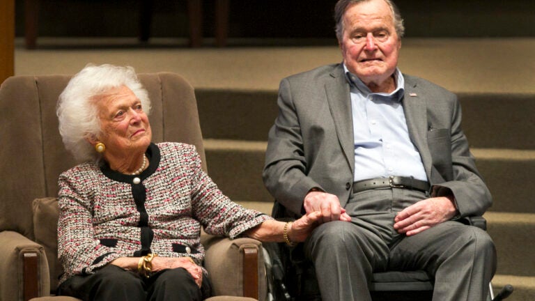 Former President George H.W. Bush and first lady Barbara Bush addressed the flooding caused by Hurricane Harvey in a statement tweeted by their spokesman Monday morning.