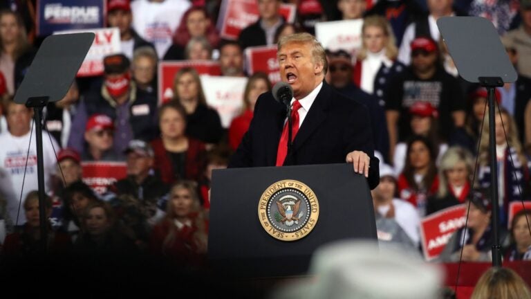 Trump did read a series of scripted lines about the two Republican senators, David Perdue and Kelly Loeffler, whose fate will decide whether Democrats have full control of Washington next year. He called the January races “the most important congressional runoff probably in American history” and lashed the Democratic nominees, Jon Ossoff and Raphael Warnock, as “far-left liberals.”