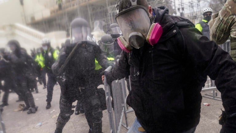 Once inside, they used pipes, flagpoles and other weapons to shatter windows and break furniture. One police officer later died of injuries sustained during the onslaught.Dozens of officers were wounded, including some who were struck with a fire extinguisher and another who was dragged down a set of steps and attacked by the crowd.