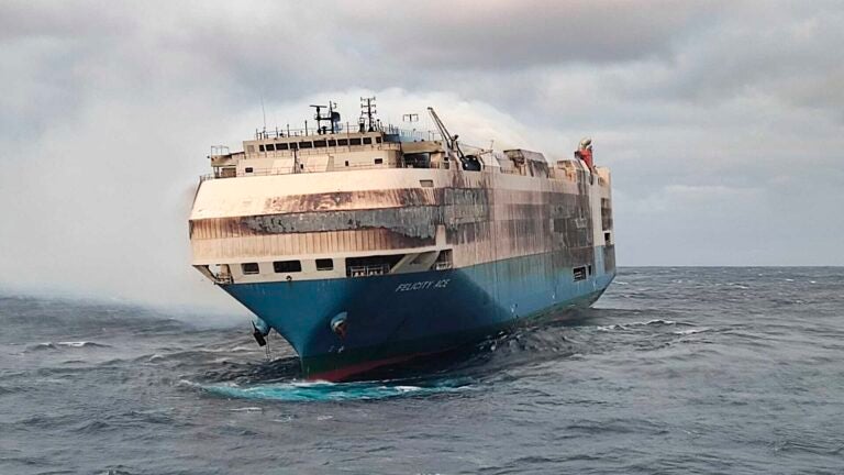 LISBON, Portugal (AP) — A large cargo vessel carrying cars from Germany to the United States sank Tuesday in the mid-Atlantic, 13 days after a fire broke out on board, the ship’s manager and the Portuguese navy said.