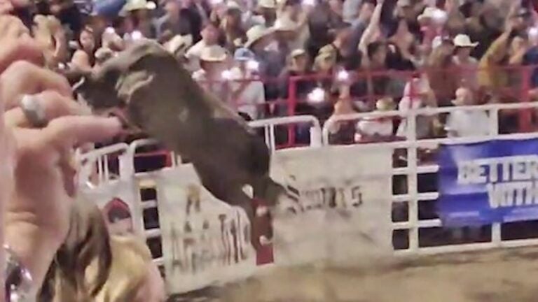 Videos taken by people attending the Sisters Rodeo on Saturday show Party Bus clearing the fence, running through the concessions area and throwing a woman into the air with his horns. After charging through the rodeo grounds, he ran back to the livestock holding pens, where “rodeo livestock professionals quickly responded to safely contain the bull,” the Sisters Rodeo Association said in a statement.