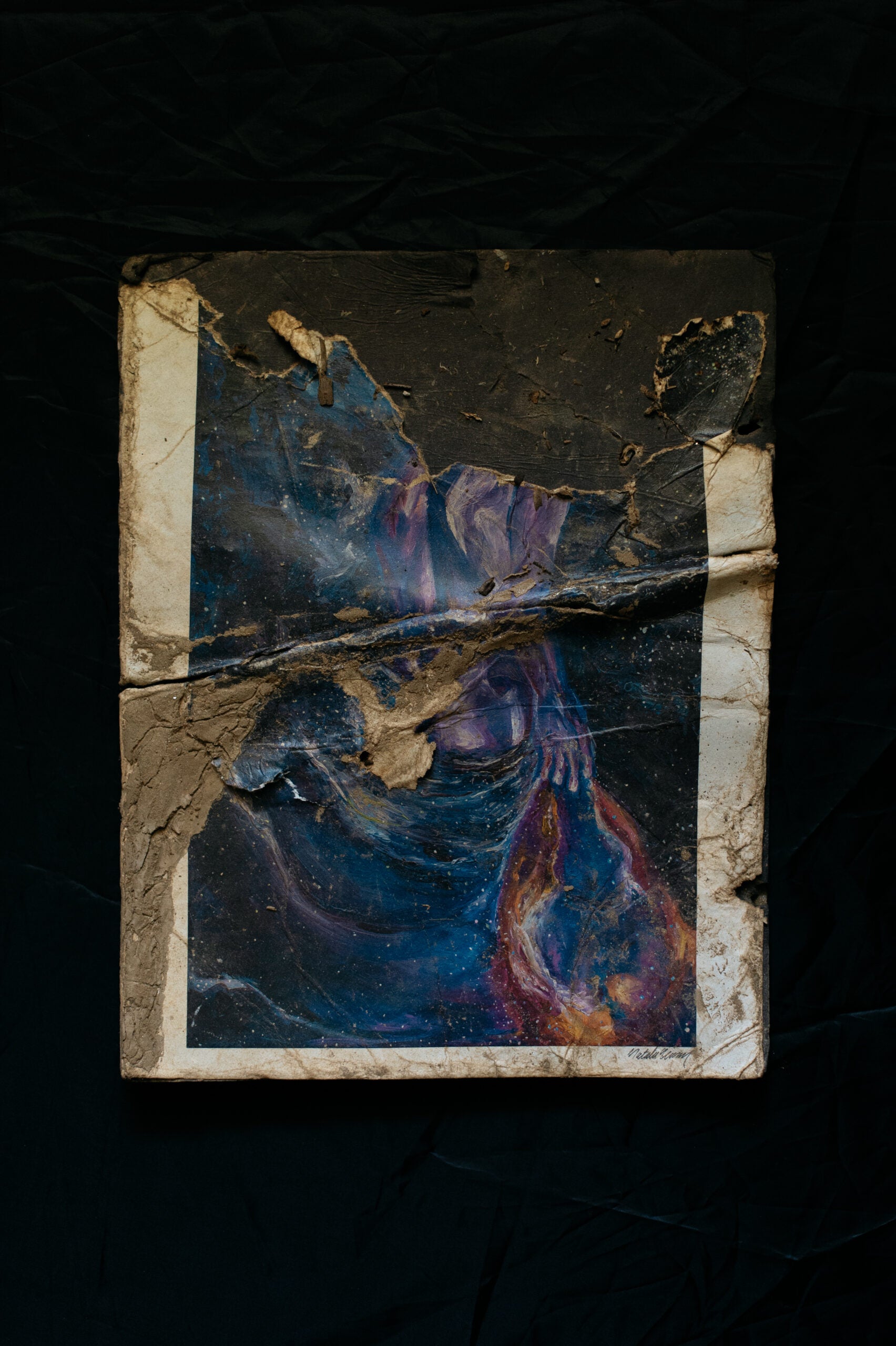But after days of searching through the debris, a friend spotted a glimmer of color peeking through the mud. It was a print of one of Newman’s paintings, sodden and stained but still intact in its plastic sheath.