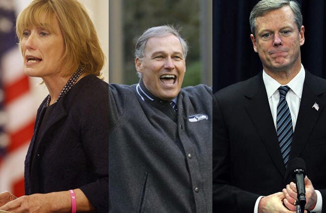 Massachusetts Gov. Charlie Baker, New Hampshire Gov. Maggie Hassan, and Washington Gov. Jay Inslee have all agreed to “wage [a] friendly bet’’ on the Seattle Seahawks-New England Patriots game Sunday night. Baker and Hassan “bet’’ on the Pats; Inslee “bet’’ on the Seahawks.