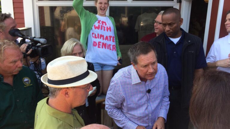 “Gov. Kasich is an example of a modern-day climate denier – he smoothly says, ‘climate change is real!’ but refuses to acknowledge that to take action on climate, we need to rapidly stop digging up and burning fossil fuels,’’ she told Boston.com.