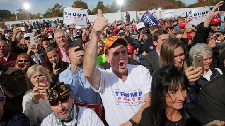 PORTSMOUTH — Hundreds of supporters of beleagured Republican presidential nominee Donald J. Trump gathered for an outdoor rally at a local car dealership Saturday morning, many clad in the candidate’s signature “Make America Great Again” red hats.