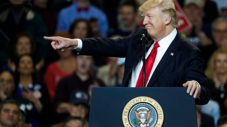 LOUISVILLE, Kentucky (AP) — President Donald Trump has taken a swipe at controversial NFL quarterback Colin Kaepernick at a campaign-style rally in Louisville, Kentucky.