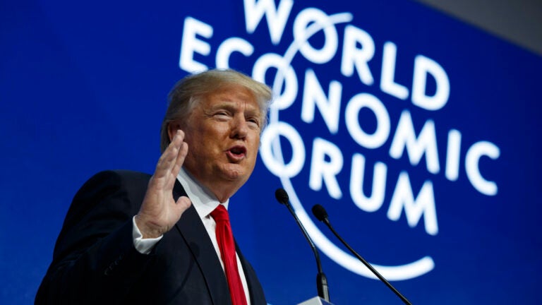 The first sitting president to attend Davos since Bill Clinton in 2000, Trump was expected to use his speech to tout his economic agenda and argue America is open for business. He’ll also stress his commitment to free markets under what he sees as fair terms.