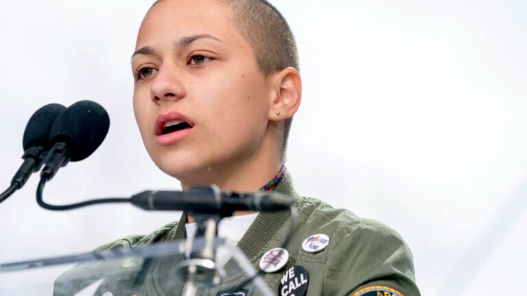 Gonzalez spoke with other Parkland, Florida, students on Saturday at a protest in Washington to demand action on gun control.