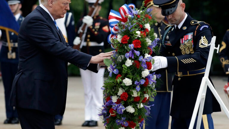 On ‘sacred soil,’ Trump lauds those who’ve fallen in service