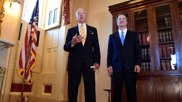Grassley and Kavanaugh took no questions during the brief appearance in a corner parlor just off the Senate floor. It capped what Grassley said later was a 30-minute meeting in the senator’s Capitol office.