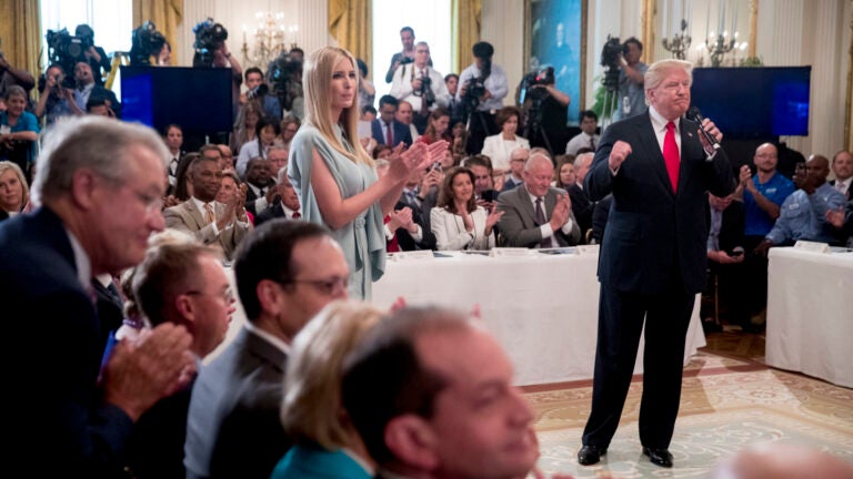 At an event in the East Room, Trump told corporate leaders and workers that the nation’s students and workers need more opportunities to attain apprenticeships, vocational opportunities and job training. The president said nearly two dozen companies and trade organizations had agreed to sign a pledge to provide the training for their workforce during the next five years.