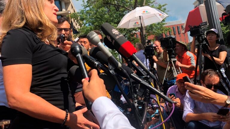 “Teams are remaining here this evening, working late into the night,” Canadian Foreign Affairs Minister Chrystia Freeland told reporters as she entered a meeting with U.S. Trade Rep. Robert Lighthizer. “They will report back to us in the morning.”