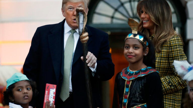 WASHINGTON (AP) — President Donald Trump and First Lady Melania Trump are marking Halloween at the White House by handing out candy to kids at a festive event on the South Lawn.