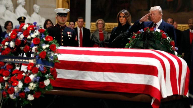 The Latest: Trump salutes Bush’s casket in Capitol Rotunda
