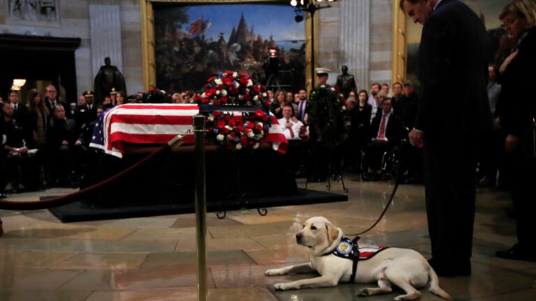 For the last six months, Sully the service dog was President George H.W. Bush’s. The yellow Labrador Retriever visited the president’s casket in the Capitol Rotunda Tuesday alongside people in wheelchairs who benefited from the Americans With Disabilities Act that Bush signed in 1990.