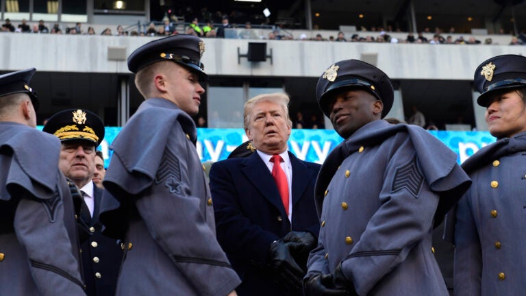 As the theme from “Rocky” blared from speakers, Trump greeted soldiers and shook hands with Mike Thornton, a retired U.S. Navy Seal and recipient of the Medal of Honor. The first quarter was barely underway when Army scored the first touchdown of the game, prompting a thumb’s up and fist pumps from the president, who sat on the 50 yard line.