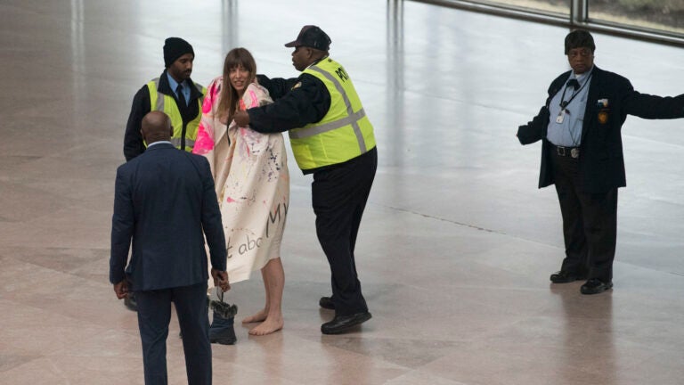 The Trump administration is not the only target for these sorts of protests. On Thursday, two female activists disrobed inside the National Gallery of Art to protest what they say is a lack of diversity in the artists being featured. One led security on a brief chase before being subdued. The National Gallery of Art did not respond to a request for comment.