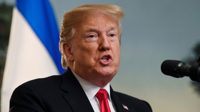 Trump, who has long enjoyed a close bond with Netanyahu, welcomed the Israeli leader on the South Lawn before escorting him to the Diplomatic Room, where the president signed a proclamation recognizing Israel’s sovereignty over the Golan Heights, a reversal of U.S. policy and a political boost for the embattled Netanyahu.