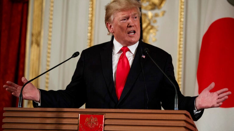 Here’s a look at some of his statements in a news conference with Japanese Prime Minister Shinzo Abe and how they stack up with reality: